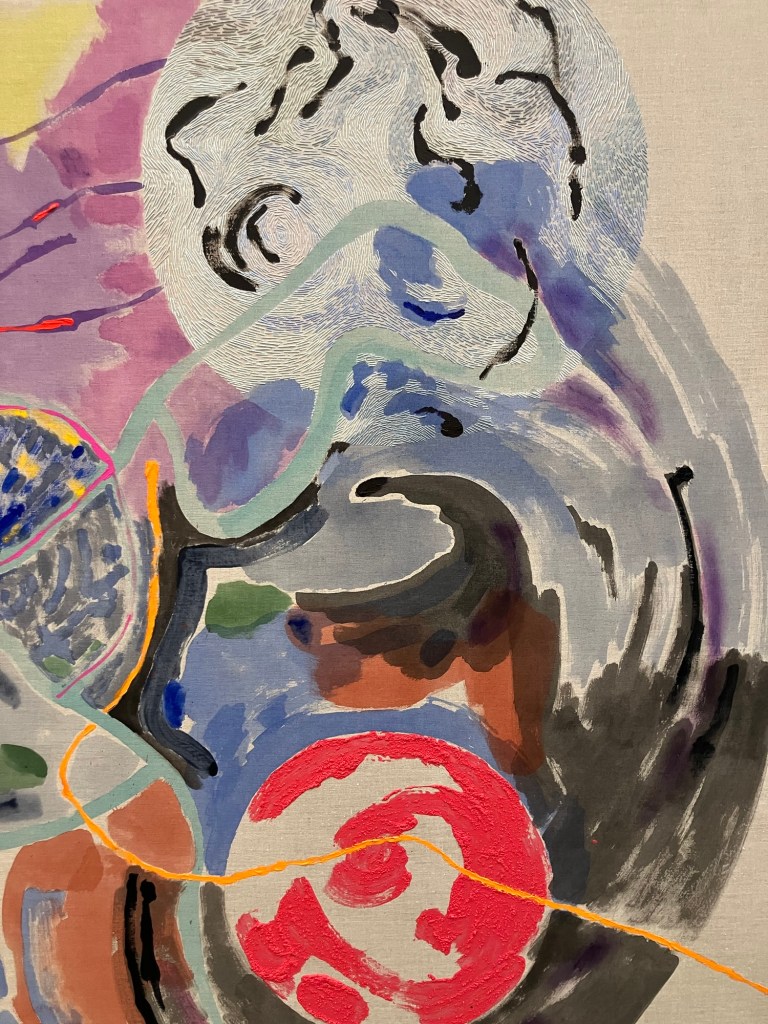 I made a pilgrimage to Masons Yard in London to visit the other elusive White Cube gallery today. I made a day trip out of it and brought my daughter and met up with my good old friend Davoc afterwards. Abstract art can sometimes leave me a bit cold (Unless it’s Lee Krasner or Helen Frankenthaler) This combination of embroidered threads flexing and breathing through the paint on unprimed canvas was refreshing and engaging on a new level. Both my daughter and I had to resist the urge to stroke and caress the threaded surface like it was cloth on a hanger.